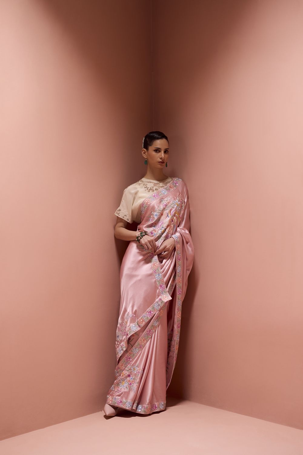 Heritage viewed with fresh eyes. Our ‘Catherine’ saree in Rose Quartz from the ‘Inheritance’ collection drapes like a dream.