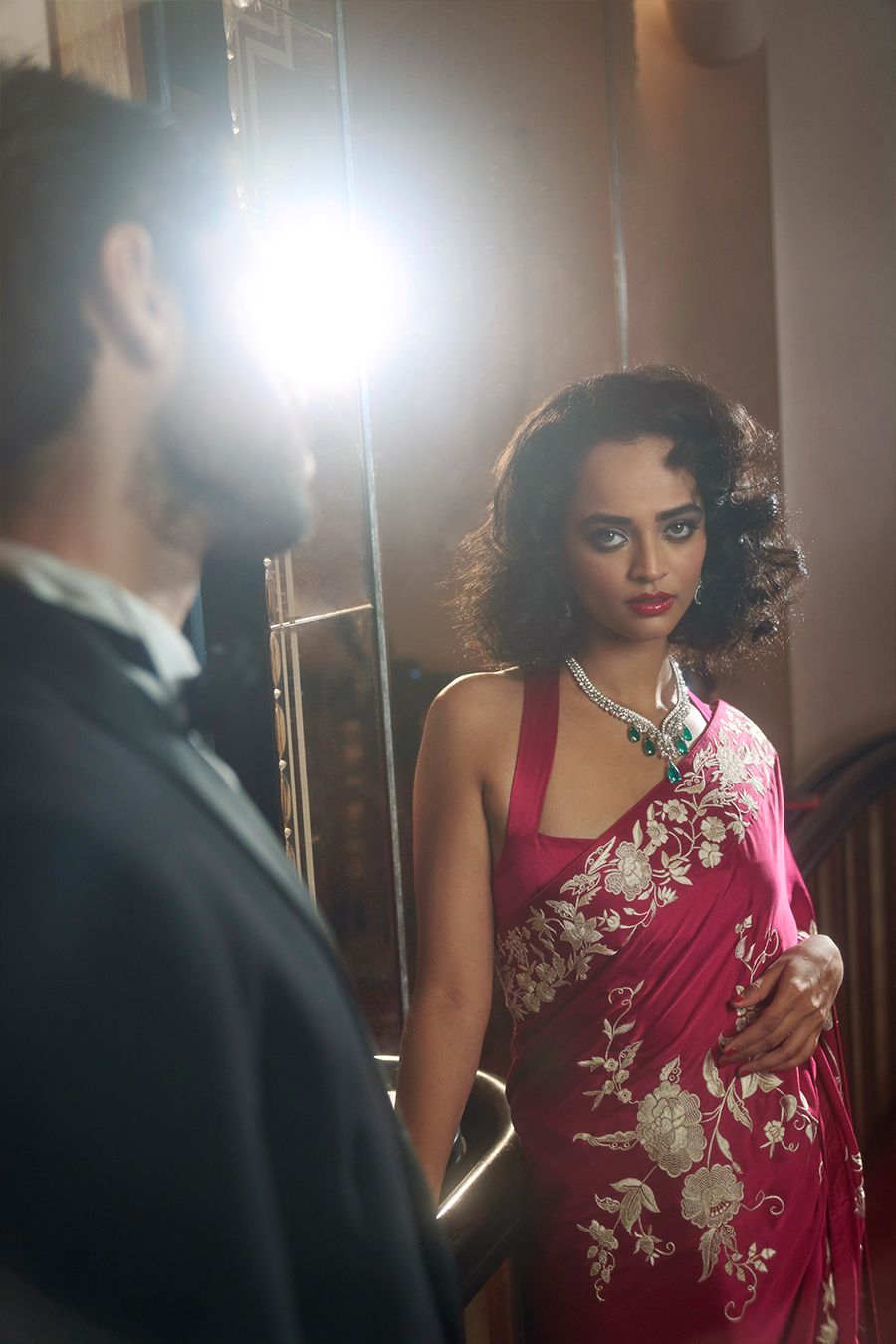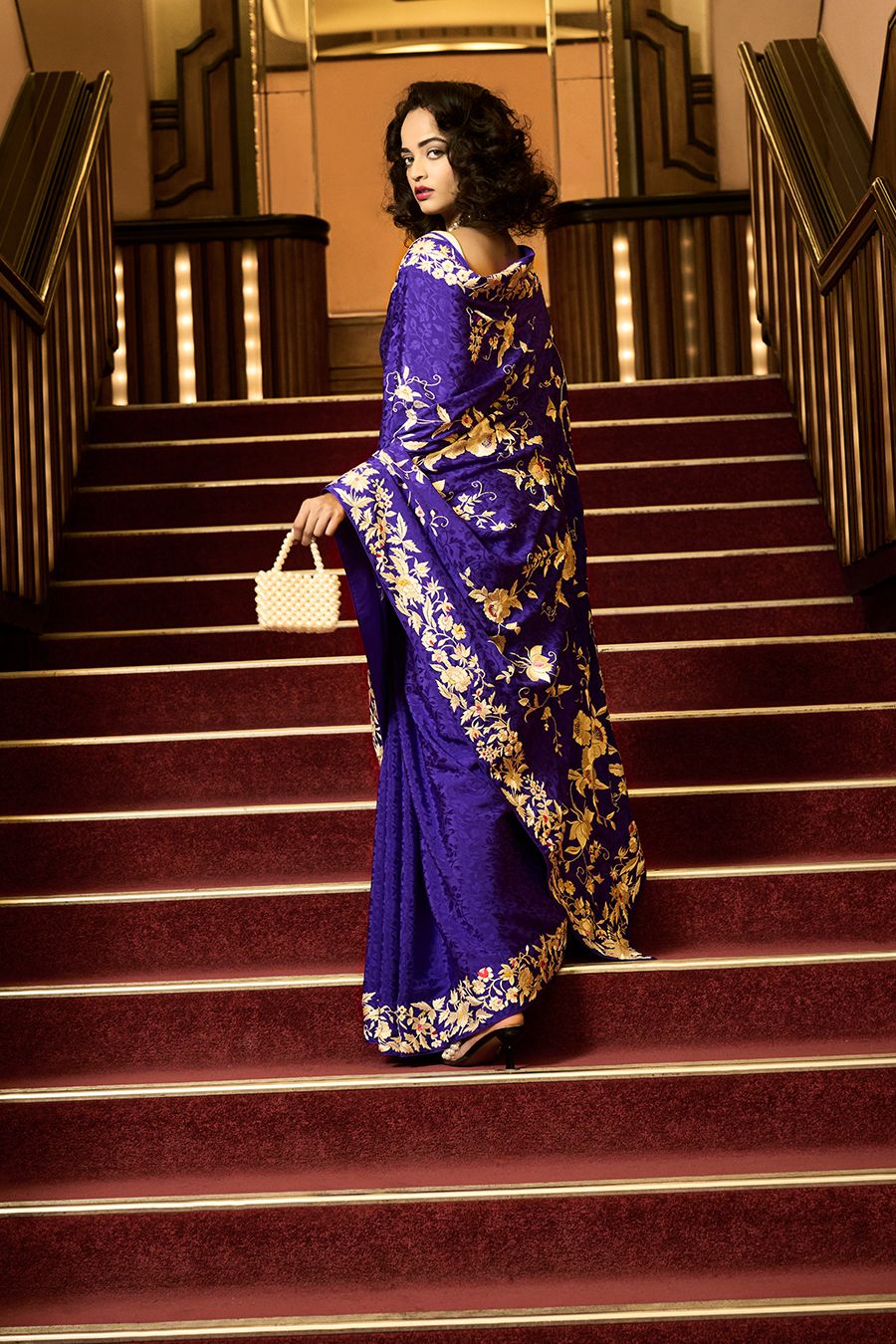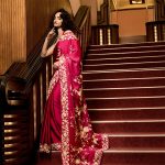 Next up is our classic ‘Christie’ sari from the Festive 2022 line, lovingly crafted in a lustrous Tulip Pink satin.