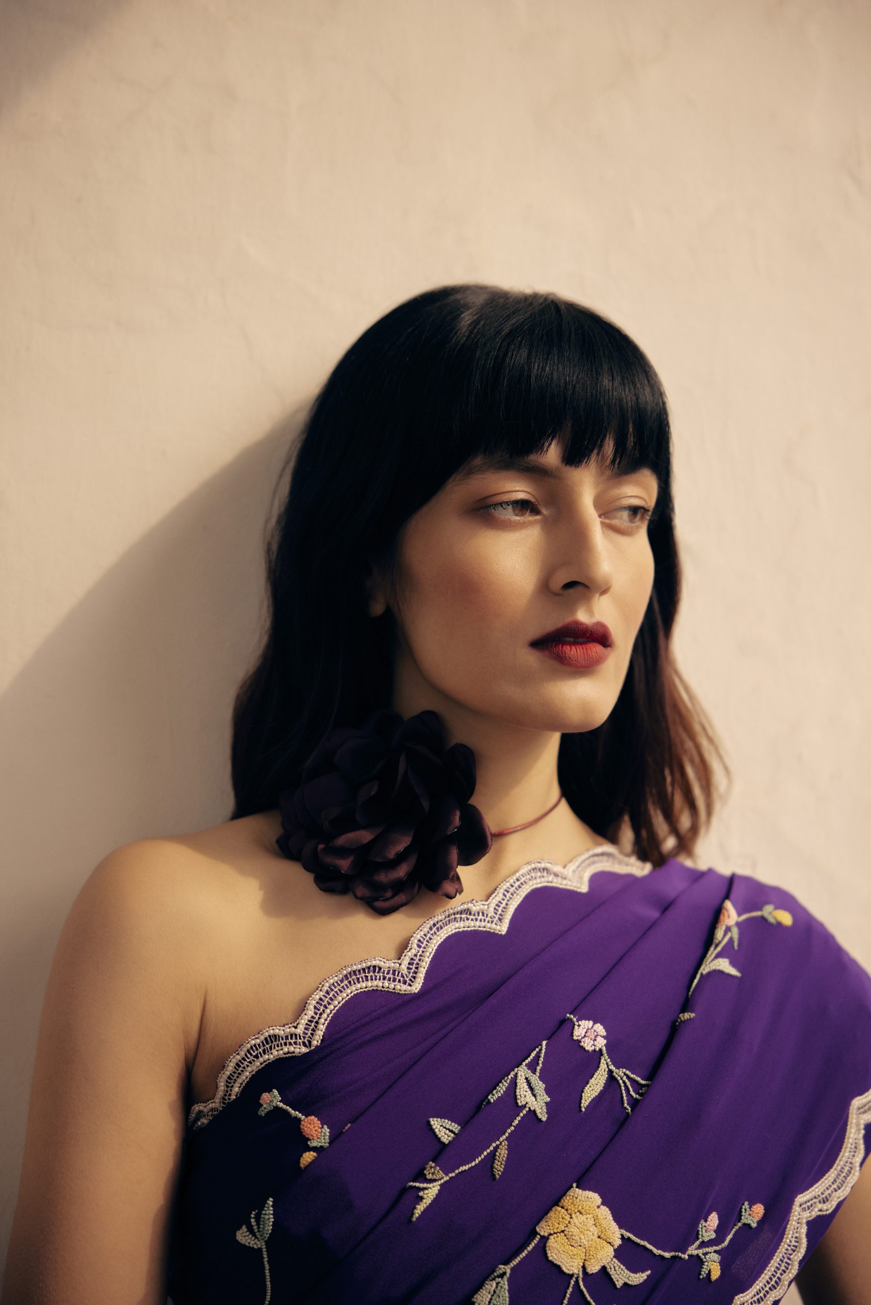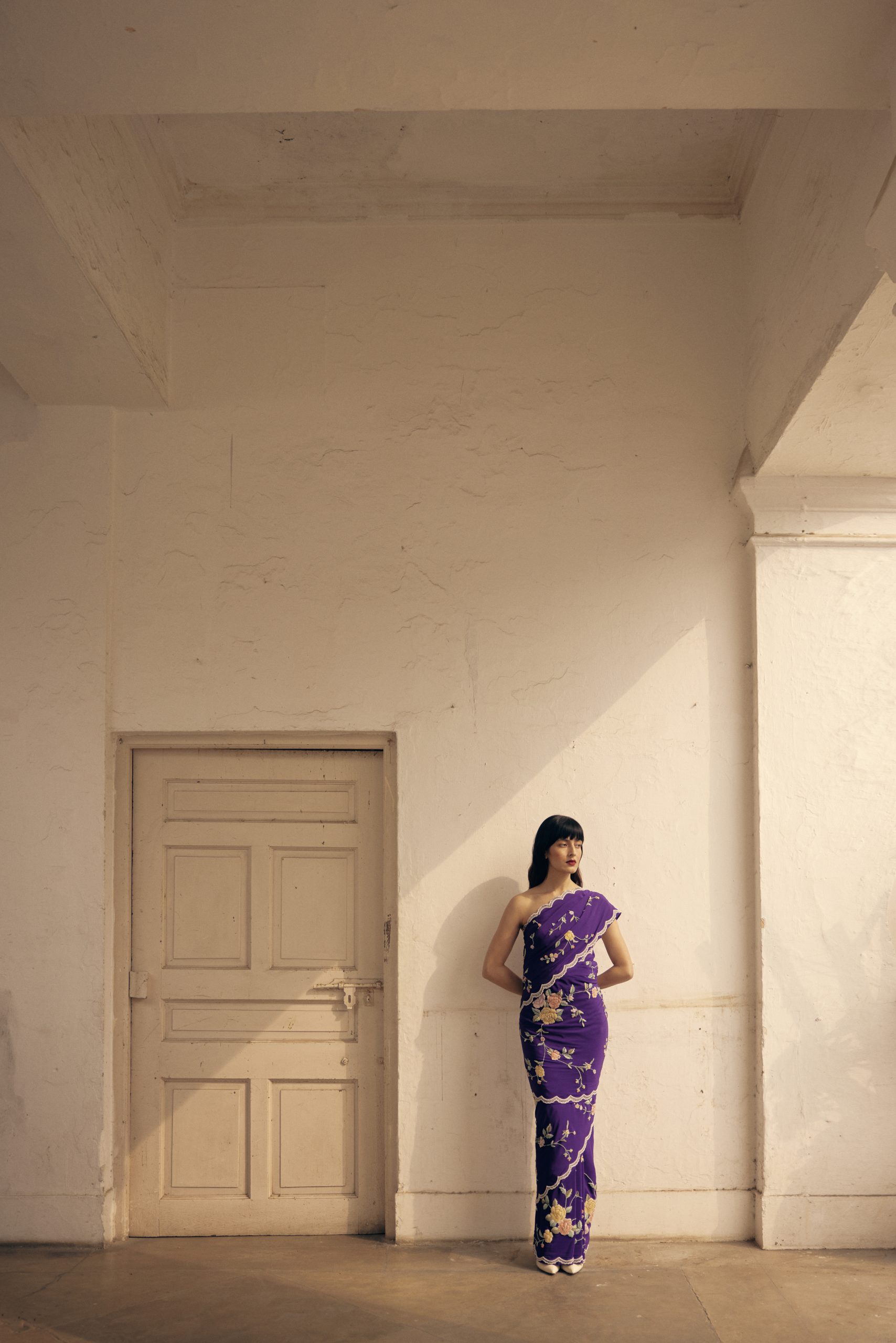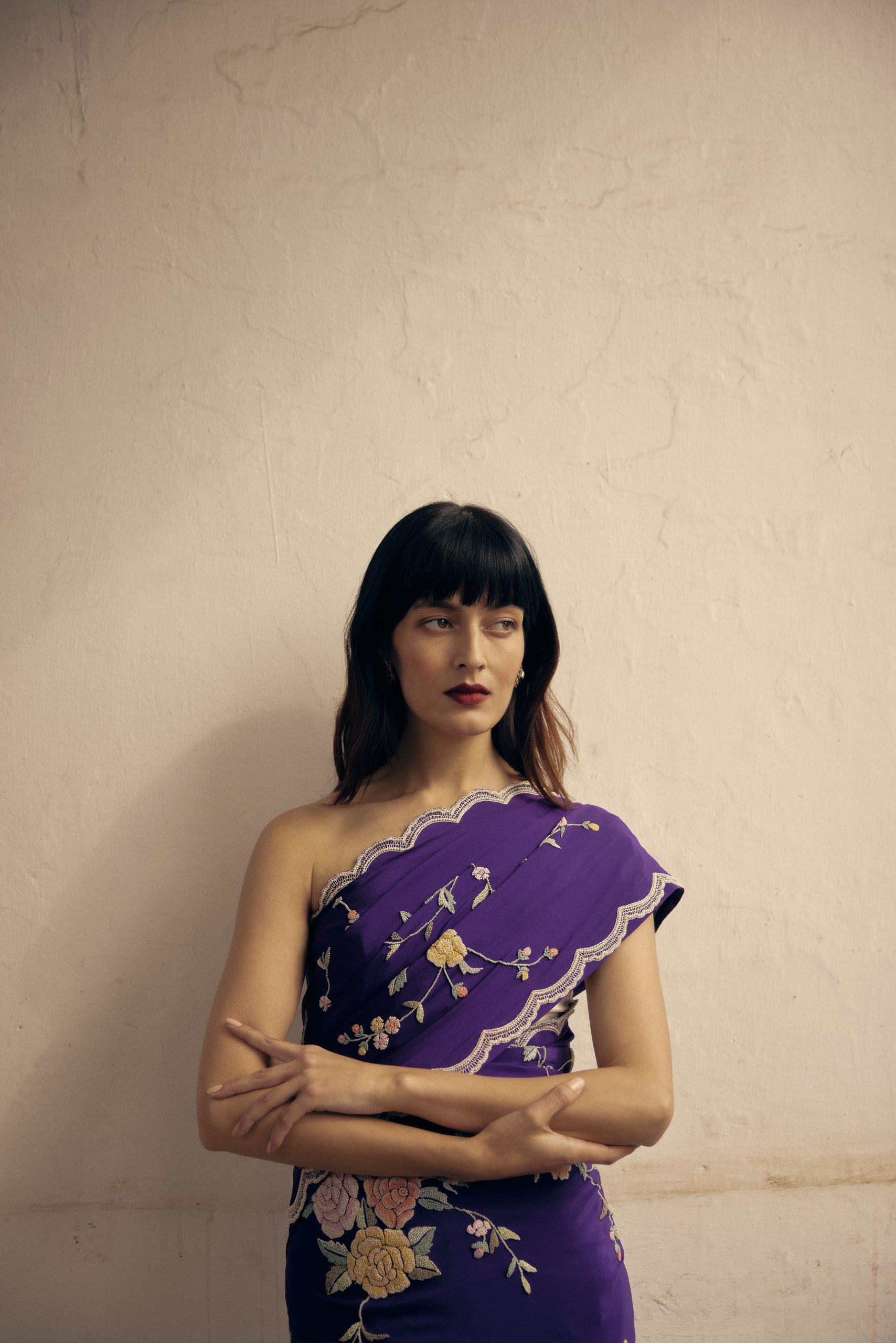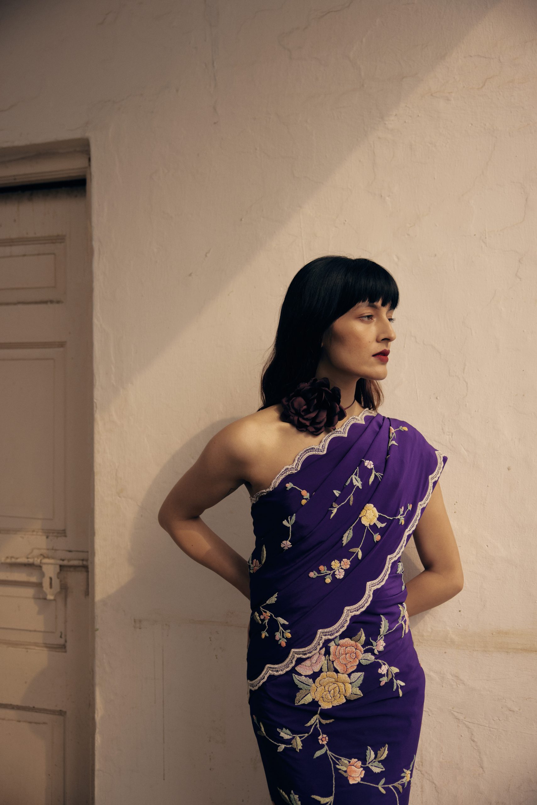 The subtle sheen on the material, the muted tones & the embroidery make it a great choice for both night & day.