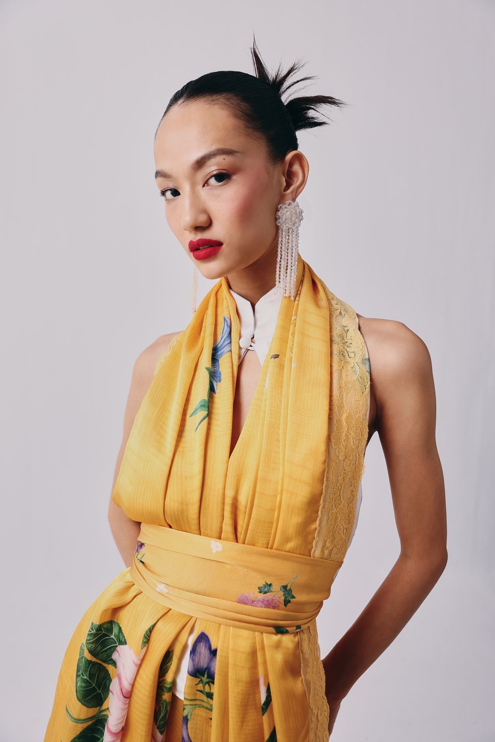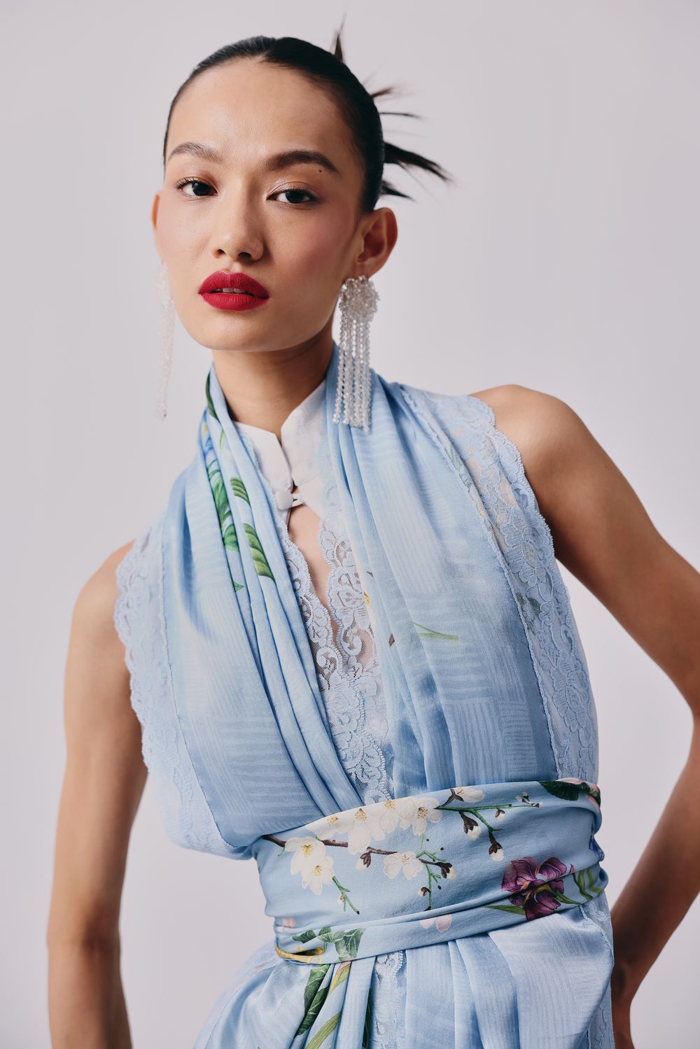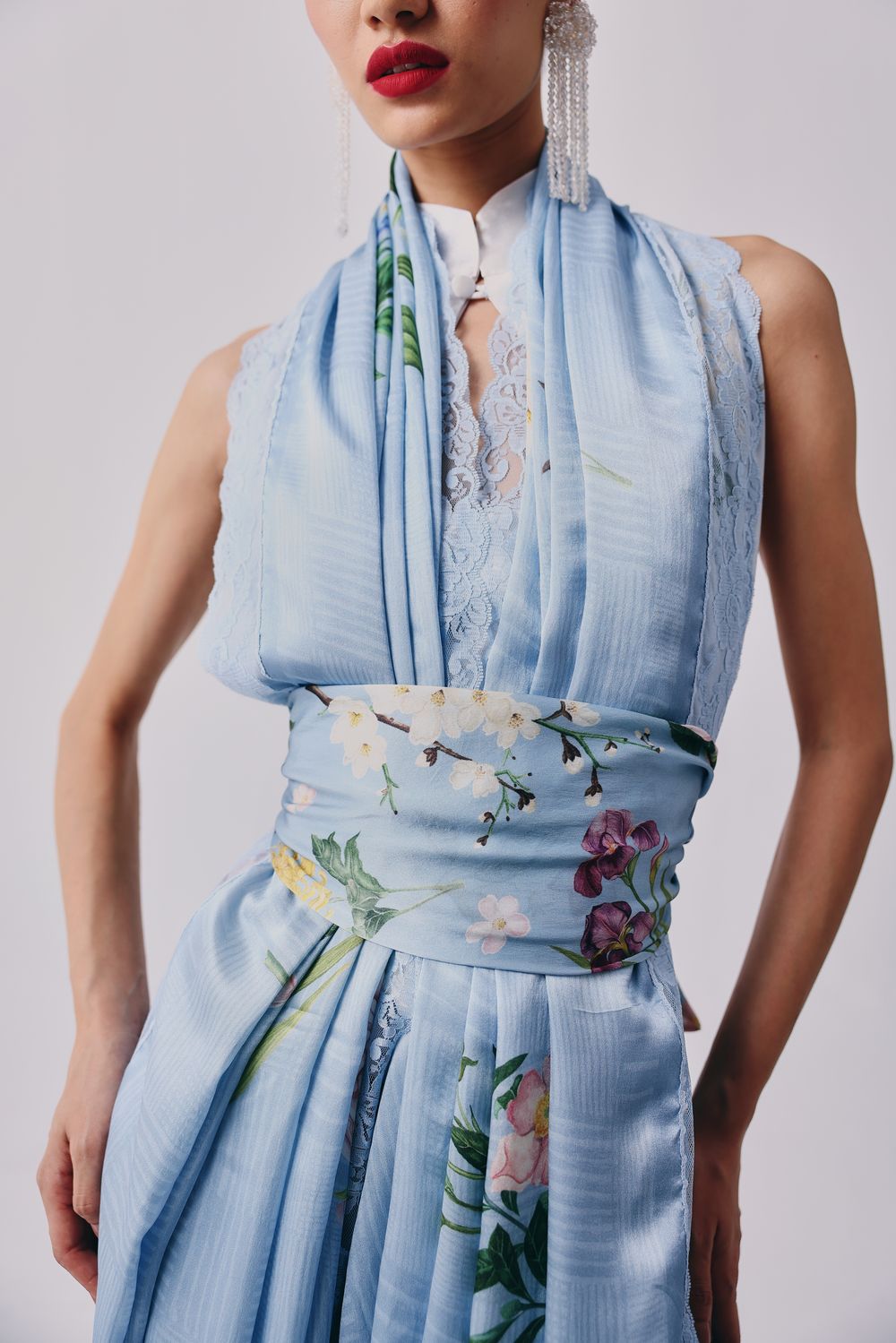 In keeping with our theme, the Ume sari celebrates the season of abundance with a smattering of Japanese florals.